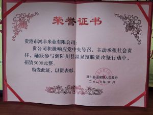 脫貧攻堅榮譽證書